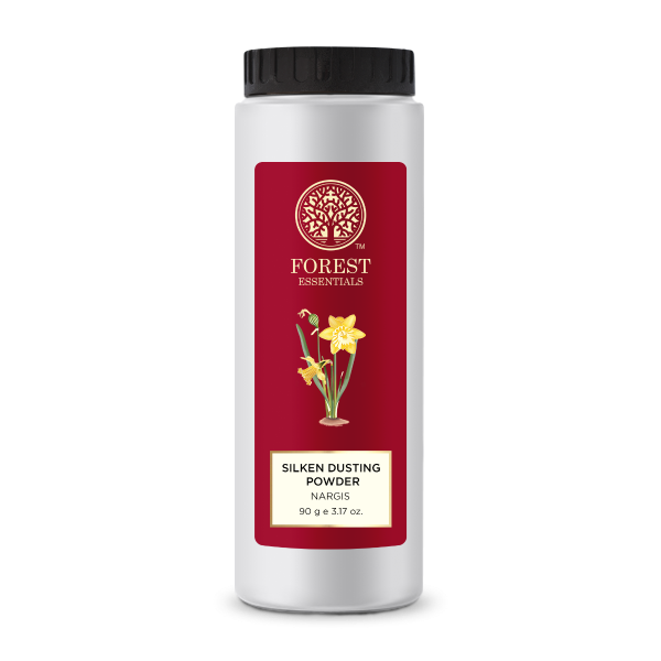 The Silken Dusting Powder from The Forest Essentials A 100% natural powder made from maize starch, Nargis is incredibly absorbent and leaves skin feeling smooth and renewed. The fabled Nargis flower is employed because of its lovely, subtle, and light fragrance.